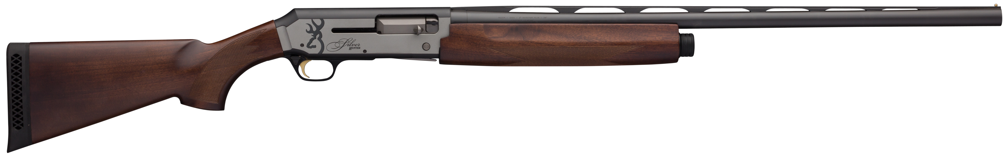 The browning silver shotgun is a no-nonsense, high-performance autoloader with a superb finish and unmatched handling.The self-adjusting active valve gas system in the silver autoloaders uses gas from fired shells to operate the action instead of contributing to recoil.The active valve-equipped gas piston automatically adjusts to reliably fire a wide range of loads.The sliver also features a gold-colored trigger and semi-humpback receiver.The field model features a silver and matte bi-tone receiver, blued barrel, and a satin walnut stock.