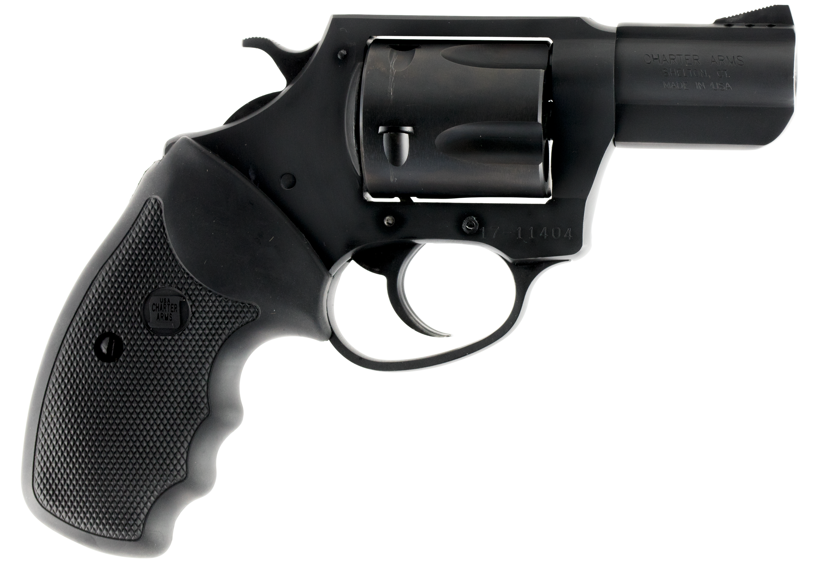 Charter's mag pug is a home protection revolver second to none.Compact, yet extremely powerful, the 5-shot mag pug features a ported 2.2-inch barrel and fixed sights.It features a traditional spurred hammer and full-size black rubber grips.