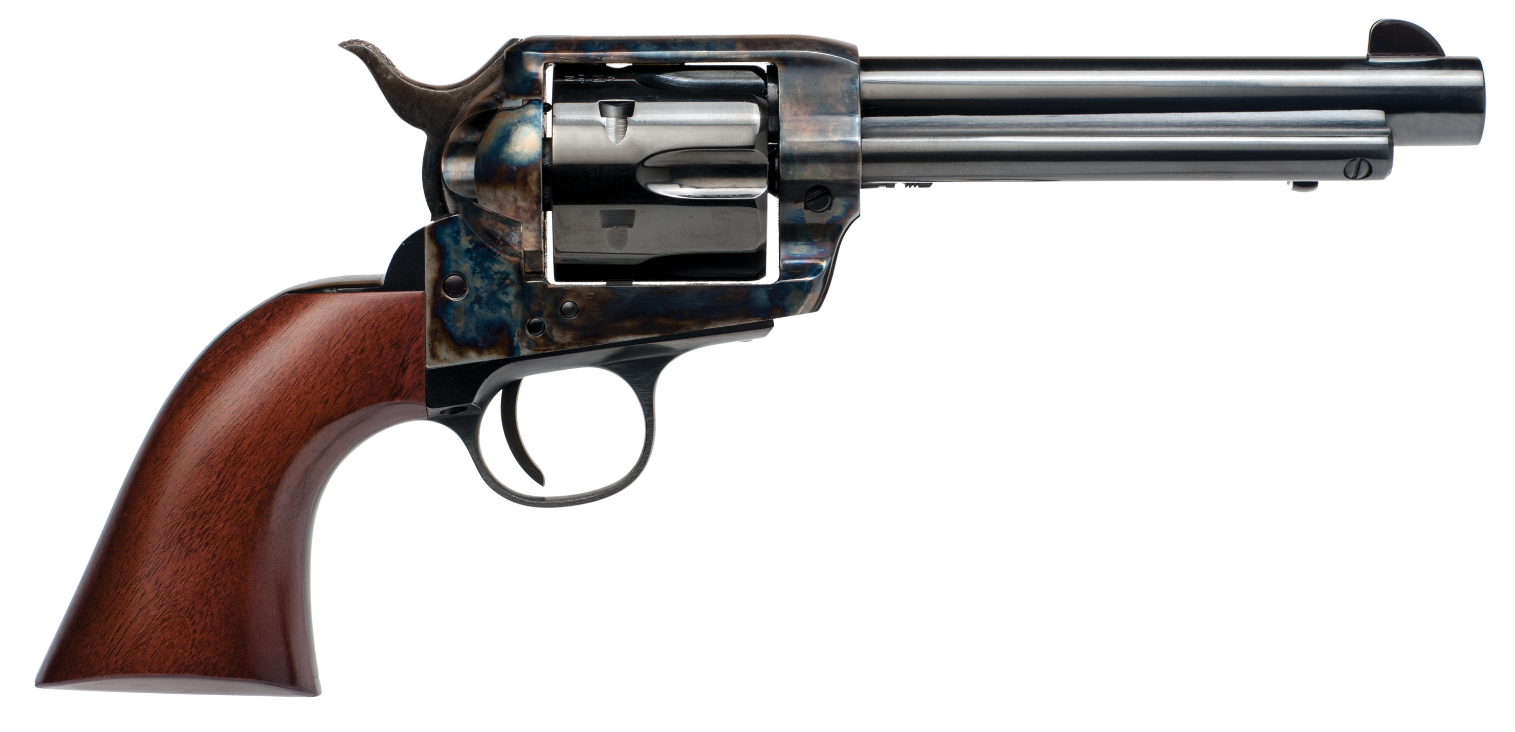 Cimarron's frontier pre-war version (1896-1940) are arguably the most famous sixgun of the old west, if not the best known in the entire world.Cimarron's frontier models look and heft just like those guns used by the famous and infamous characters of the wild west.Men like wyatt earp, bat masterson, "texas" john slaughter, the texas rangers and the arizona rangers, all packed them to enforce law and order.While men such as jesse james, billy the kid, johnny ringo, butch cassidy and members of his "hole in the wall" gang and other hombres who, as they said in the old west, "threw a wide loop," used them to ply their lawless trade.Cimarron's replica, inspired by an original in our collection, sports the traditional blue and color case hardened finish with one-piece walnut grips.Our replicas are exact duplicates of the originals.