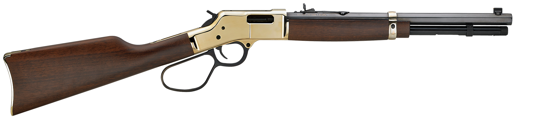 The henry big boy carbine is a modern carry-over of the 'trapper' classics of the past.It combines all the features of henry's legendary big boy rifle with the quick handling of a shorter, lighter carbine barrel length which decreases barrel weight by almost a pound.It's the ideal brush gun for tight spaces, but don't let its compact size fool you.And like the classic henry big boy, the attention to detail in the design with great western styling including the large loop lever makes holding this rifle as thrilling as it is to shoot.Its octagonal barrel is outfitted with a classic fully adjustable semi-buckhorn rear sight with a reversible white diamond insert and a brass beaded front-sight.Both the straight-grip stock and forearm are crafted of select american walnut accented with a brass barrel band and henry's recognizable brass receiver.All have that crisp, smooth action that sets an authentic american-made henry apart from other lever action rifles on the range and in the woods today.