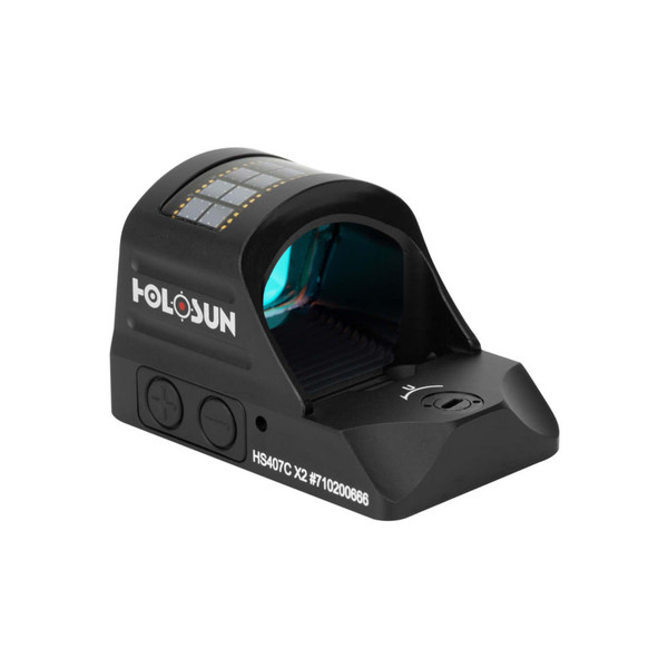 The hs407c-x2 is an open reflex optical sight designed for pistol applications.Features include a red moa dot, holosun's super led, 50k hours battery life, solar failsafe and shake awake.The x2 version adds improved glass clarity and lock mode.Includes t10 l key, cr1632 battery, lens cloth and user manual.