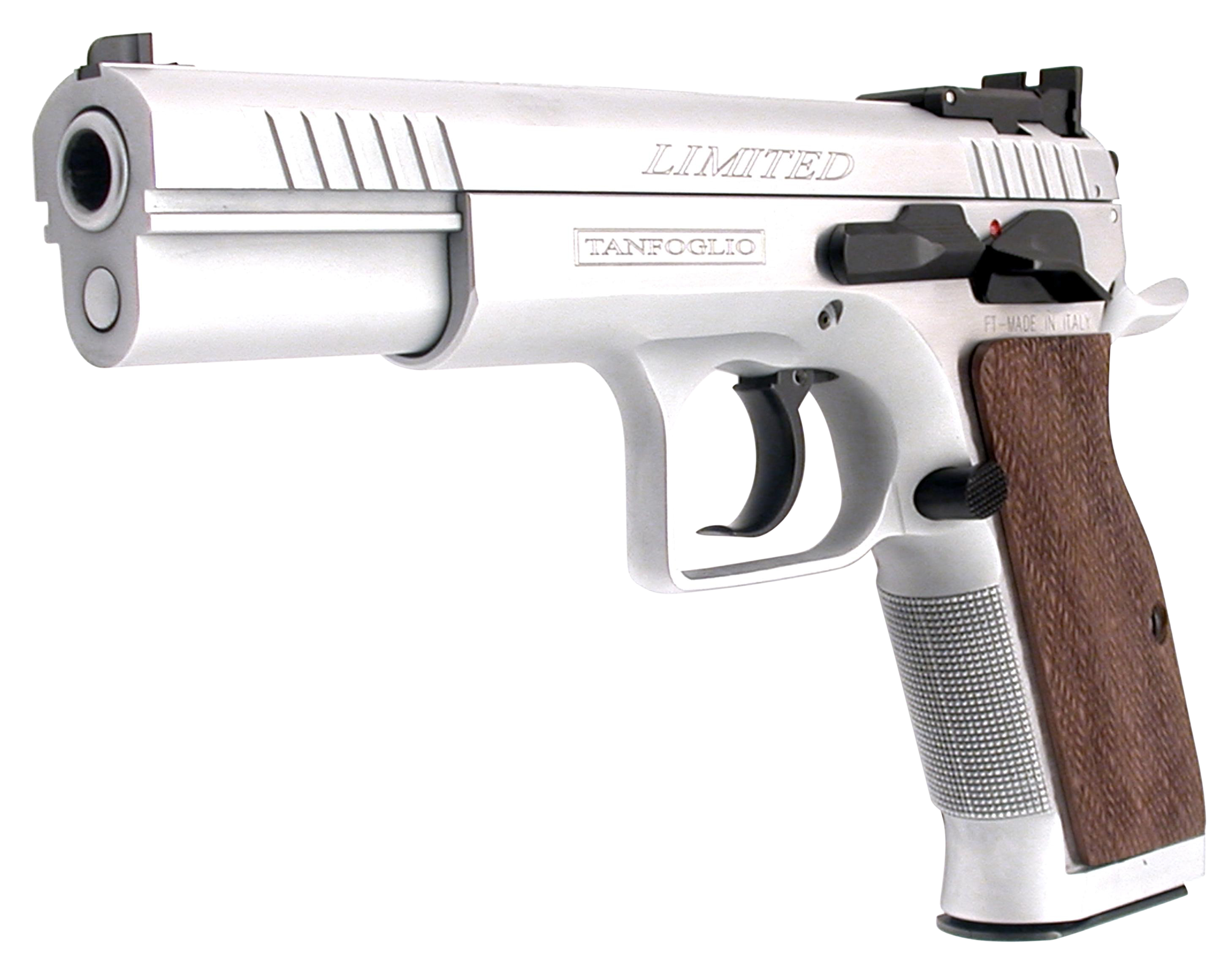 The defiant limited pro double/single action pistol is designed specifically to meet the requirements of the i.P.S.C production class.This model features hard chromed finishing, squared trigger guard, checkering on the front and back of the frame for increased grip, polygonal rifle, and larger slide serrations.Standard on the limited pro are the custom safety, custom magazine release that is user reversible, walnut checkered grips, fully adjustable rear supersight, and interchangeable front sight.