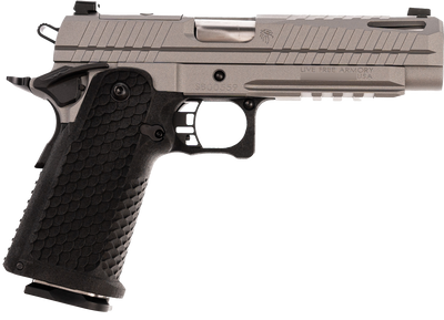 The apollo 11 pistol crafted with precision and attention to detail is the embodiment of form and function.The pistol features a 416 stainless steel slide; 4140 steel frame; double-stack magazine design; rifle cut, match-grade, bushingless bull barrel; innovative recoil reduction system; aggressive grip texture; accessory rails enable the attachment of lights, lasers and other tactical enhancements; slide with an rmsc optic cut; grip safety and an ambidextrous manual thumb safety.Its durable finish resists wear and corrosion, ensuring a long service life.Includes magazine & soft case.