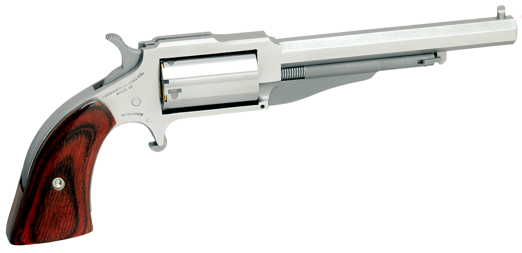 Frame Description: Stainless Steel Type: Revolver Action: SAO Caliber: 22 Mag Barrel Length: 4" Capacity: 5rd Hammer Style: Exposed Grips: Rosewood Boot Sights: Stainless Post Sight Weight: 8.90 oz Frame Size: Small Cylinder Finish: Stainless Barrel Finish: Stainless Steel Oal: 7.75" Includes: 22LR Cylinder Barrel Length Range: 4" to 4.99" Weight Range: 9 oz to 15.99 oz