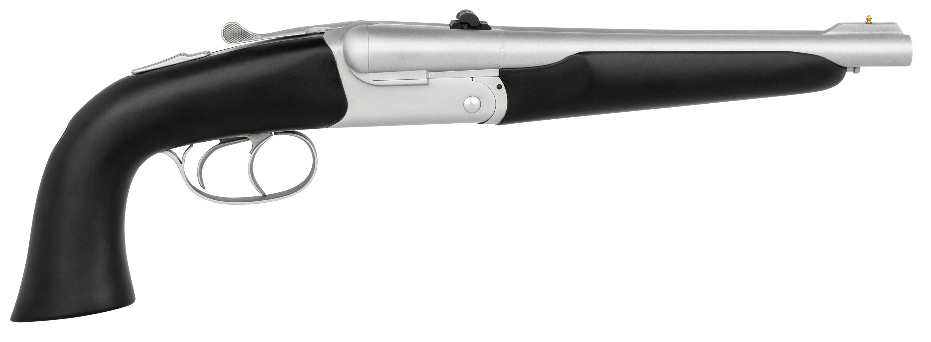 Pedersoli's howdah 45/410 is a double triggered, breech loading, extractor pistol reproduction.The main difference is that pedersolis howdah 45/410 is chambered in 45 colt, having 10.25 inch, 6-groove rifled barrels with a 1:48 right hand twist and equipped with lengthened chambers to support use of 3 inch.410 shotshells.The pistol is furnished with a ramp front sight and folding rear leaf sight.The rear grip fits snugly in the hand allowing easily controlled use.The alaskan variant of the howdah 45/410 has been hard chromed with rubber overmold wood to resist the elements.