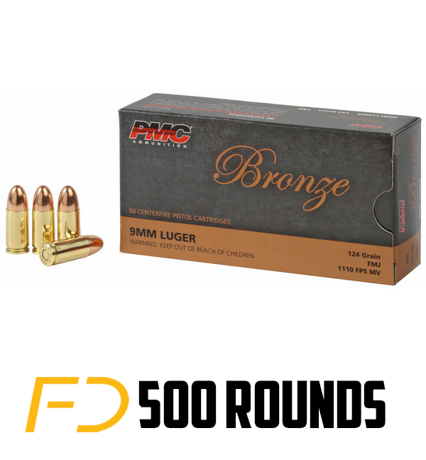 Pmc 9g bronze 9mm luger 124 gr full metal jacket (fmj) 50 bx/ 20 cs