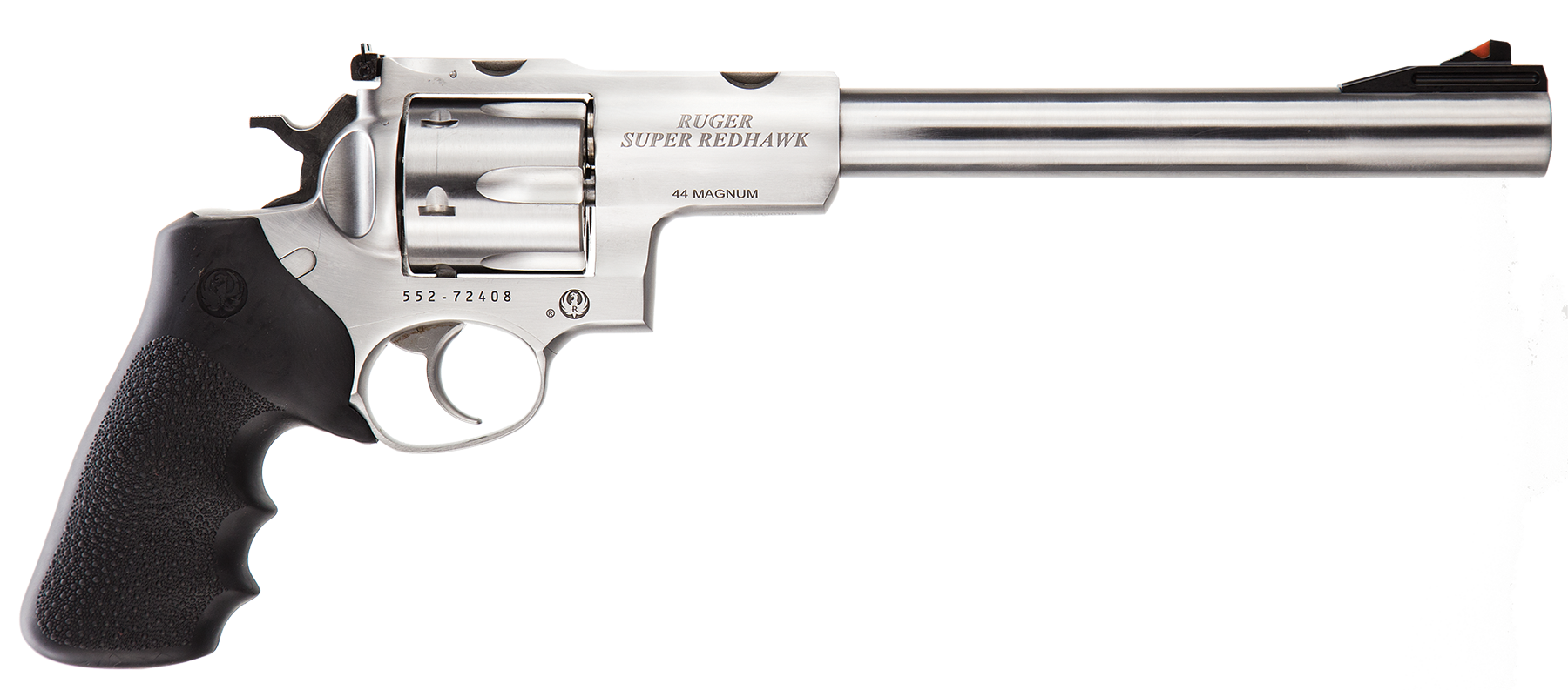 Ruger's super blackhawk revolver features a patented transfer bar mechanism and loading gate interlock which provide an unparalleled measure of security against accidental discharge.Its traditional western-style, hand-filling grip is comfortable and has natural pointing of any grip style.The super blackhawk also has cold hammer-forged barrel, adjustable rear and fixed front sights, and is reliable with coil springs throughout for durability.Included are scope rings.This model has a 9.5" stainless barrel, frame, and cylinder.It also has hogue tamer monogrip and integral mounts are machined directly on the solid-steel barrel rib.