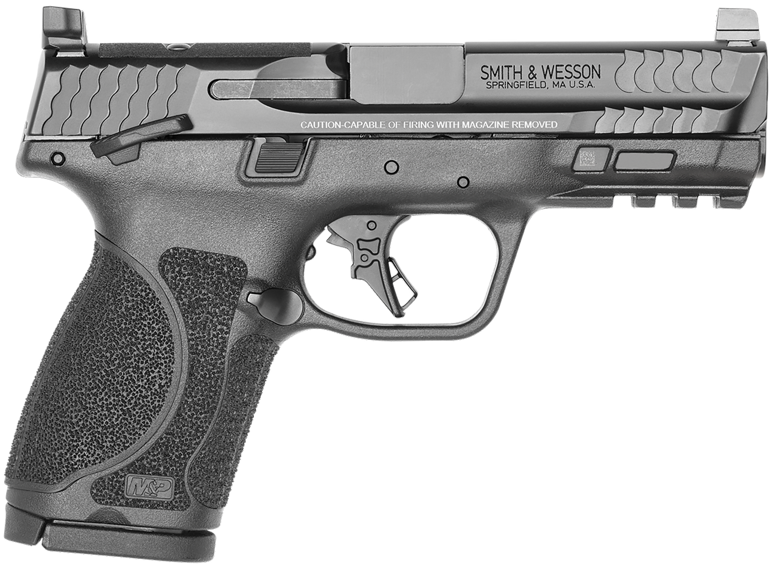 S&w efforts to increase efficiency with its enhanced features like an adjustable palmswells, flat-face trigger design, aggressive slide serrations and enhanced grip texture.Other features are c.O.R.E.System - optic cut slide with plates designed to accommodate most major red dots on the market; tall 3_dot sights; 180 grip angle, the m&p platform offers users a natural point of aim allowing them to get on target quicker.In addition, our aggressive grip texture allows shooters to manage recoil and keep a firm grip.Includes four interchangeable palmswell grip inserts and two magazines.