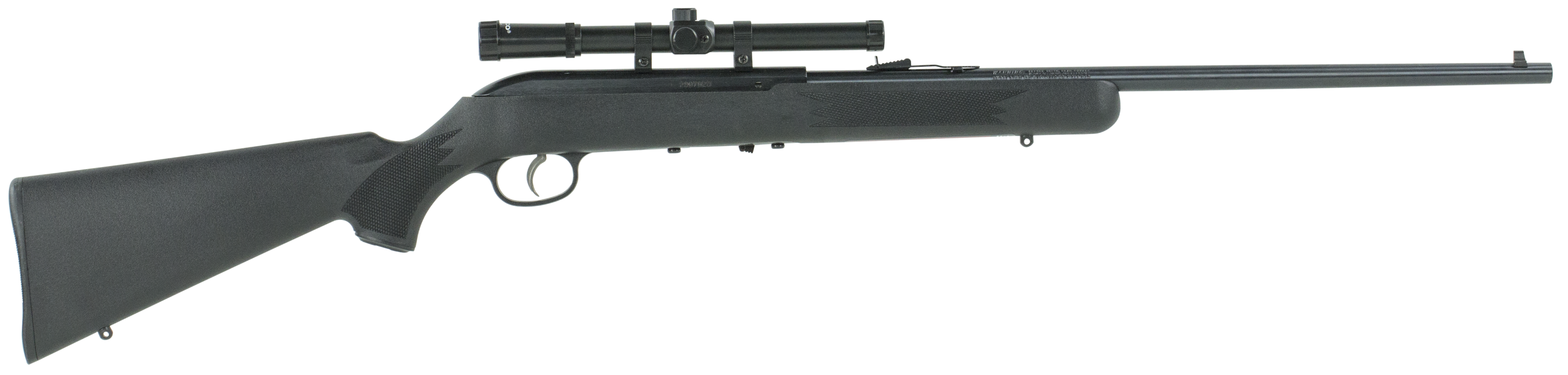 The savage arms 64 fxp rifle is chambered in 22lr and has a 10+1 capacity.It has a carbon steel barrel with a blued finish and a black synthetic stock.Included is a 4x15mm scope and rings.This model is configured for left-handed shooters.