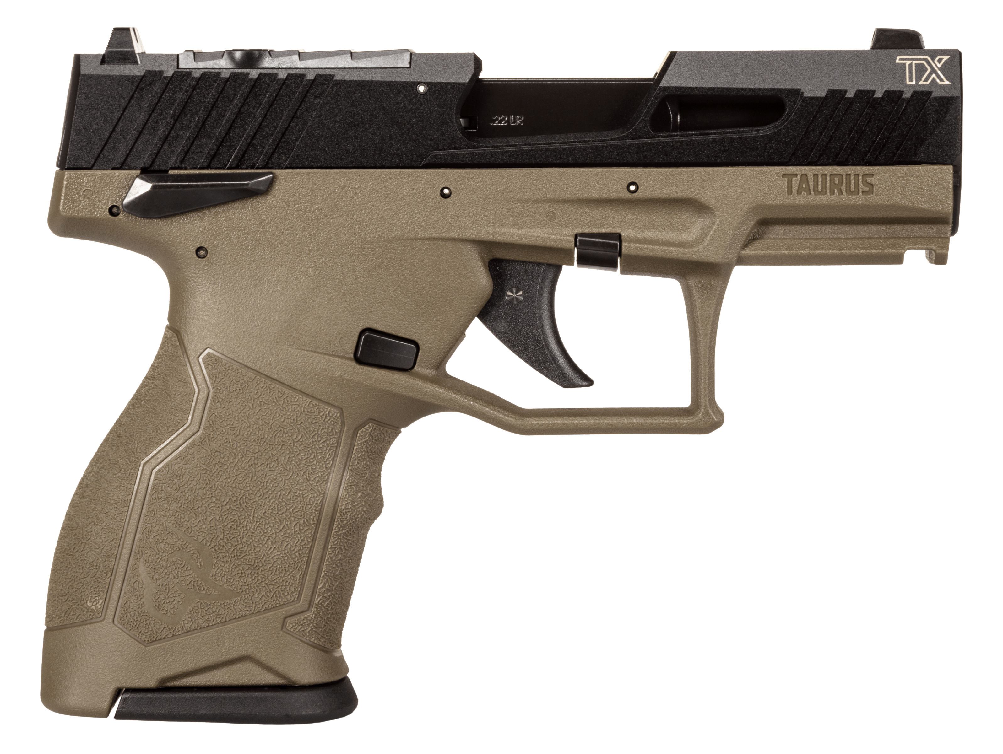 The taurus tx22 compact delivers class leading reliability, capacity and shootability in a 22 lr platform.Its 10rd staggered column magazine pairs with the taurus performance trigger system for fast, accurate shots.All taurus tx22 compact pistols are optics ready from the factory, with a footprint that matches the shield rmsc and holosun k optics.Features slide lightening cuts, weight reduction needed for reduced barrel length and optic weight; picatinny rail and manual safety.Includes two magazines.