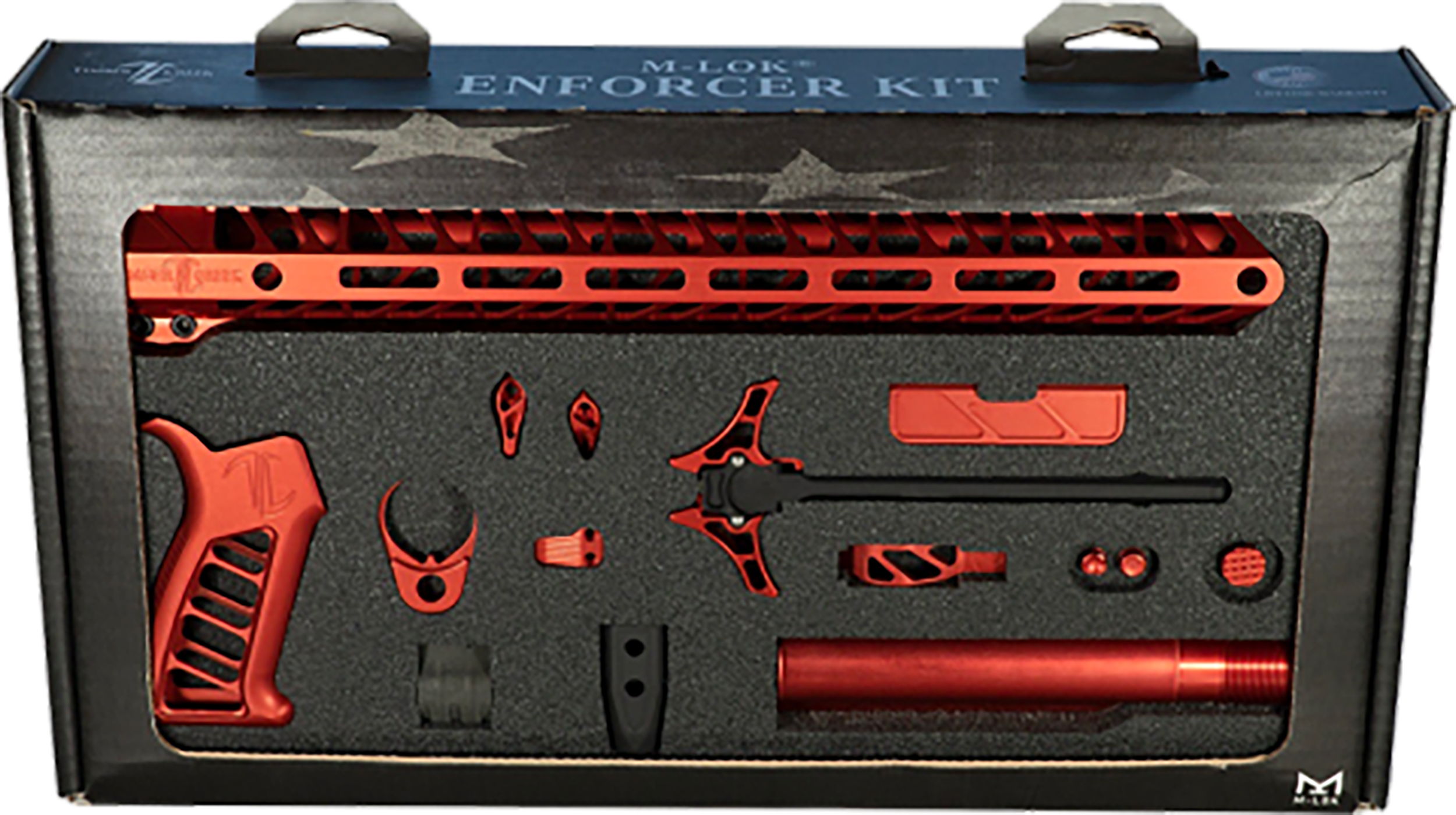 The enforcer complete build kit is compatible wit your ar-15.It includes: 15" ultra-light m-lok handguard; enforcer oversized ambidextrous charging handle; forward assist; billet dust cover; enforcer ar pistol grip; oversized trigger guard; ambidextrous safety; extended magazine release; takedown pins; qd end plate; buffer tube; low profile.750 gas block; 223 heat breaker.