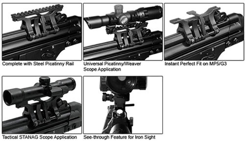 -Complete with detachable steel Picatinny rail to accept complete range of STANAG as well as