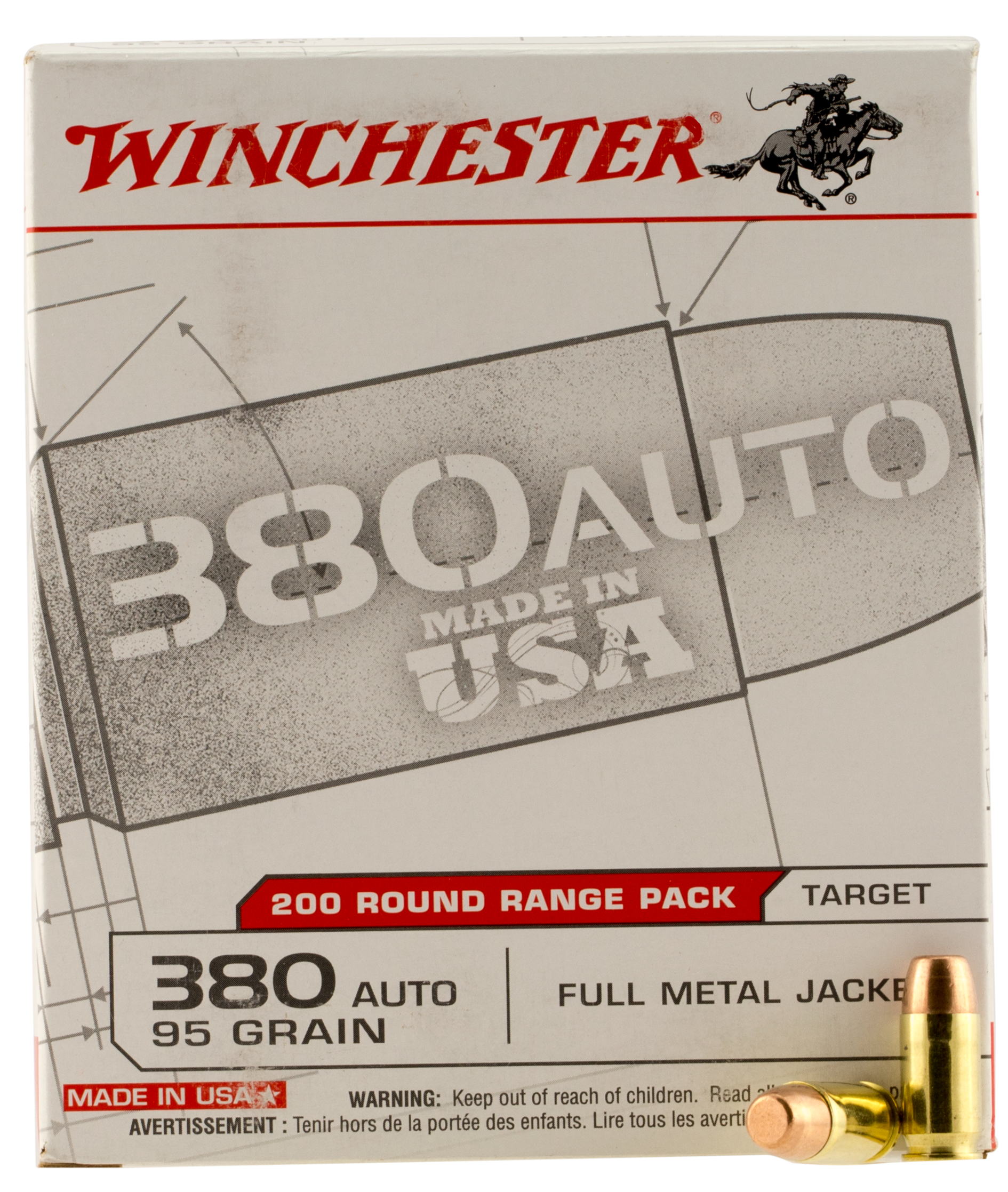 Winchester .380 ACP, 95gr, FMJ - 200 Rounds [MPN: USA380W]
